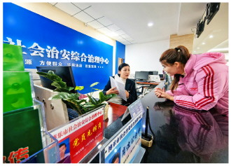 | 10月20日,新疆维吾尔自治区博乐市综治中心工作人员正在为群众提供服务。 张蕾 摄 |