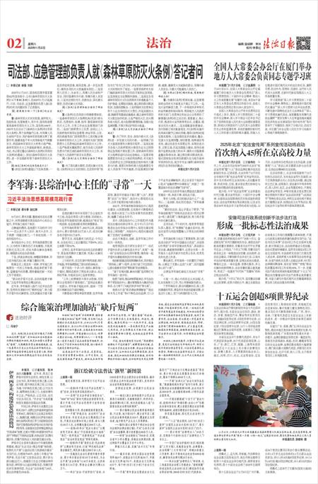 本报讯 记者崔东凯 张冲 通讯员陈春雨 近年来,黑龙江省伊春市坚持生态优先、绿色发展,以立法为民,筑牢绿色发展之基;以执法为要,提升绿色发展之效;以司法为魂,守护绿色发展之底;以守法为本,凝聚绿色发展之力,全面统筹科学立法、严格执法、公正司法、全民守法各项任务,“四步走”为高质量转型发展提供坚强法治保障。