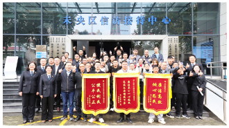 图为在西安市未央法院诉讼服务分中心,被欠薪的务工人员拿到工资后,向中心工作人员送上锦旗表示感谢。