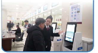 图为在西安市未央法院立案庭的智慧服务终端前,工作人员指导前来办理业务的群众操作系统。