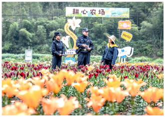 图为近日,浙江省武义县公安局熟溪派出所民警走访辖区花卉种植基地,了解生产经营状况,开展安全防范宣传。 本报通讯员 徐文荣 摄
