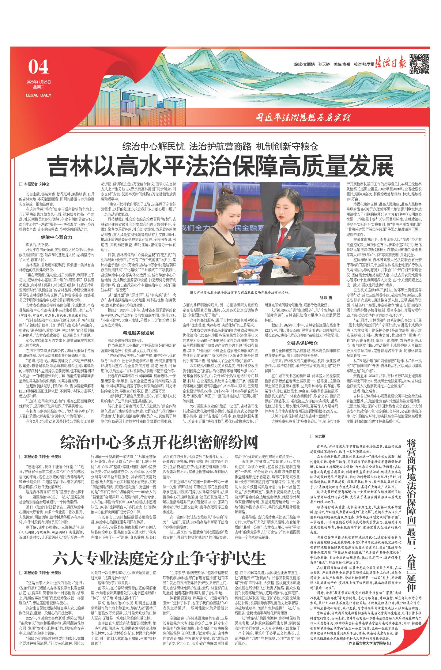 吉林以高水平法治保障高质量发展