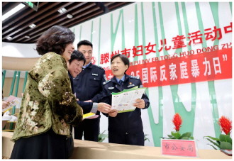 图① 近日,山东省滕州市公安局联合法院、检察院、妇联等部门开展“反家庭暴力·守护幸福家庭”系列宣传活动。图为活动现场。 本报通讯员 钟家增 摄