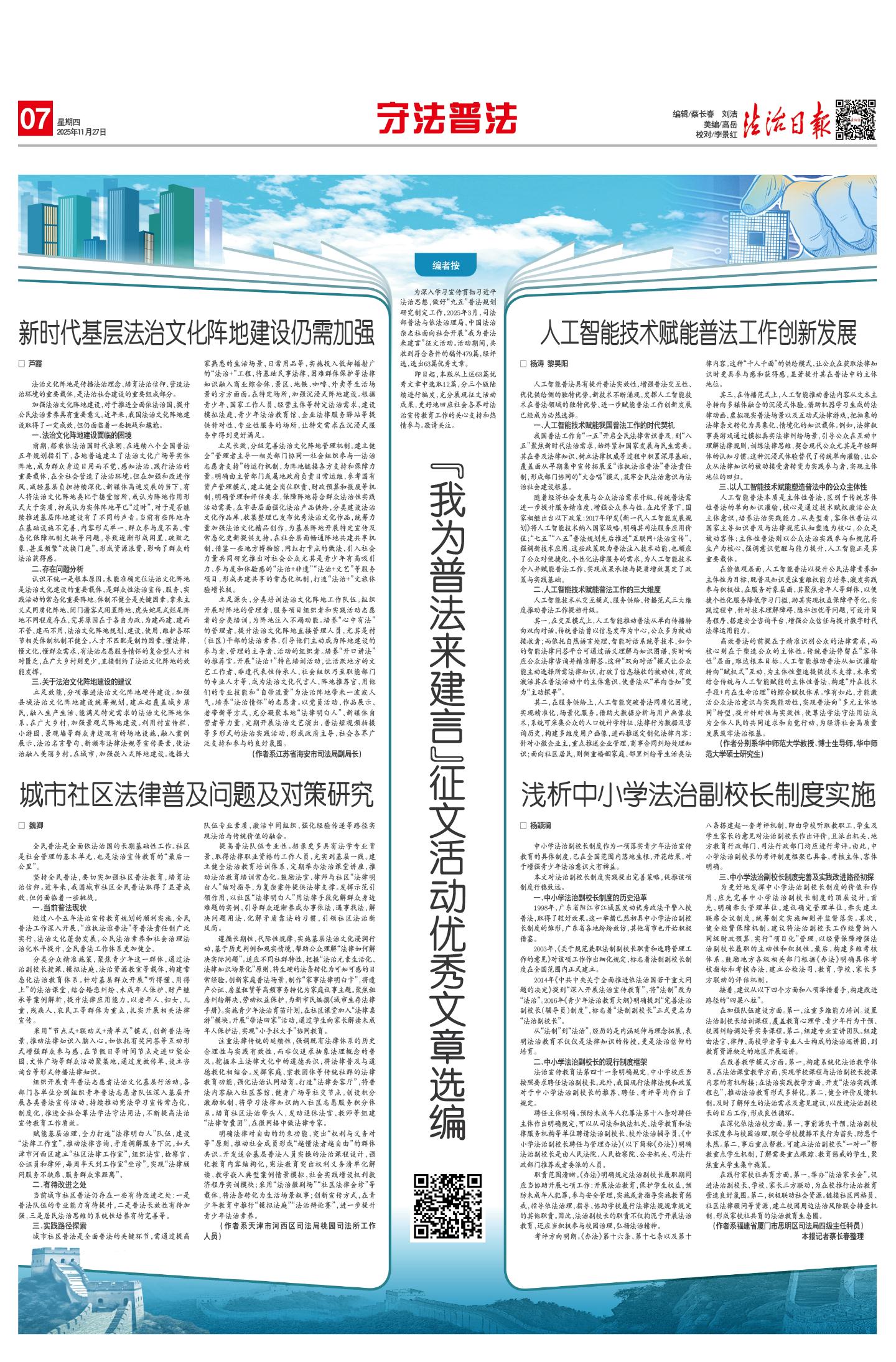 “我为普法来建言”征文活动优秀文章选编