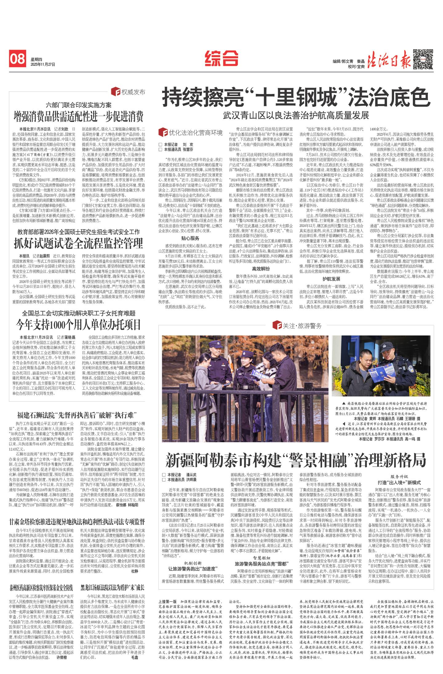 持续擦亮“十里钢城”法治底色 (2025年11月27日) |