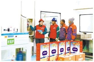近日,国网塔什库尔干县供电公司组织共产党员服务队,走进新疆维吾尔自治区喀什地区塔什库尔干塔吉克自治县班迪尔乡沙棘厂,开展安全用电宣传活动。图为服务队队员向沙棘厂员工讲解防触电知识。 那扎尔买买提·再尼丁 摄