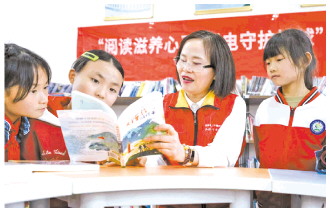 近日,国网台州市椒江区供电公司组织红船共产党员服务队,走进浙江省台州市椒江区大陈实验学校,开展“阅读滋养心灵,绿电守护地球”主题宣传活动。图为服务队队员与同学们共读《大陈岛的孩子》,了解大陈岛依托绿电资源、打造“零碳海岛”的实践探索。 王奕诚 摄