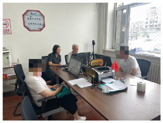 图为抚顺中院“老法官说法调解室”调解员程检(右二)正在调解一起商品房买卖合同纠纷。