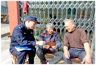 为打通为民服务“最后一公里”,江西省分宜县公安局杨桥派出所建立老年人办理证照“绿色通道”,推出“流动户籍室”,常态化为老年人开展送证上门服务。图为民警近日为老人送证上门。