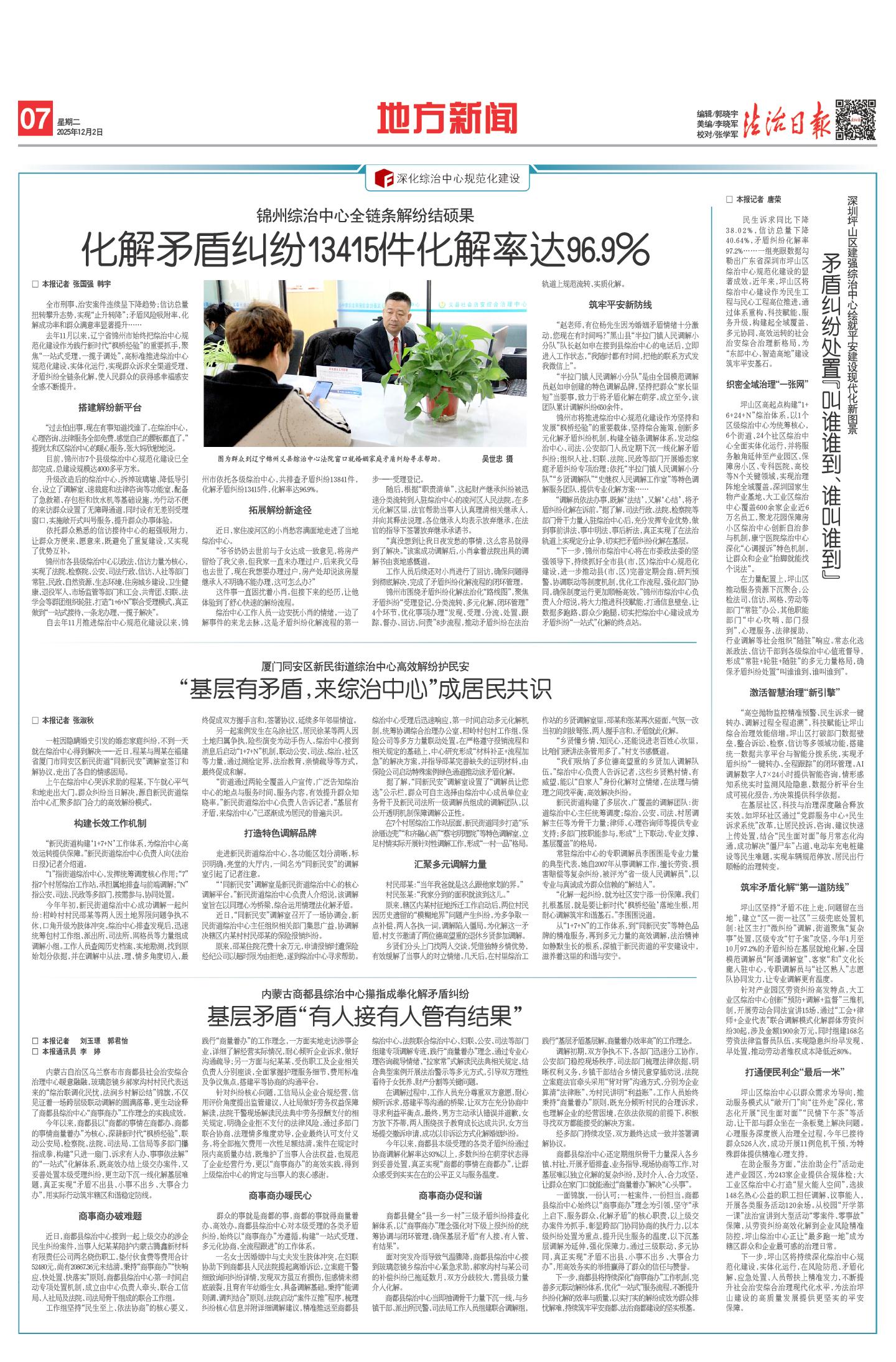 “基层有矛盾,来综治中心”成居民共识