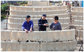 图① 11月26日,浙江省台州市公安局黄岩分局城南派出所民警来到高桥街道下浦郑村晒场走访,同时开展安全防范宣传。