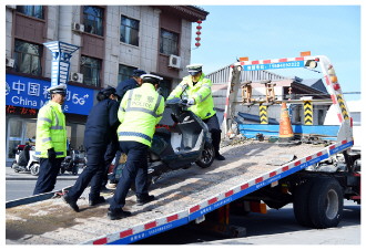 图② 11月21日,甘肃省临泽县公安局交管大队城区中队联合城管执法队开展道路交通秩序集中整治行动。