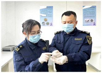 近日,钱江海关关员在国际进境邮件内发现一批活体螳螂和螳螂卵鞘。现场清点,该包裹内共装有7只螳螂和73枚卵鞘。经鉴定,其中7只活体螳螂均为魔花螳螂,73枚卵鞘分别为魔花螳螂59枚、非洲树枝螳4枚、刺花螳螂8枚和瘤刺螳属2枚。上述物种在我国自然环境中均没有分布,属于外来物种。目前,海关已按相关规定进行处理。图为海关关员展示查获的外来物种样本。