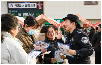 ▲ 近日,安徽省含山县公安局组织民警在辖区广场开展反诈主题普法宣传进商圈活动,通过发放宣传手册等形式,向群众讲解“刷单返利”“AI换脸”等近期高发的诈骗类型和防骗要点。图为民警为群众提供法律咨询。
