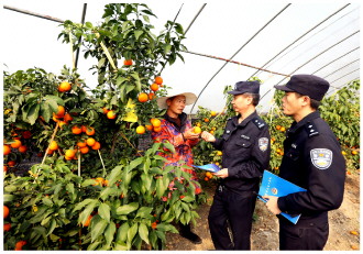 连日来,江西省分宜县公安局钤山派出所立足辖区产业特色,深耕果园警务,将警务服务延伸至田间地头,积极开展治安巡逻、纠纷调解、助农服务、法治宣传等工作。图为民警在钤山镇果冻橙种植基地开展助农服务,并向果农宣传反诈知识。