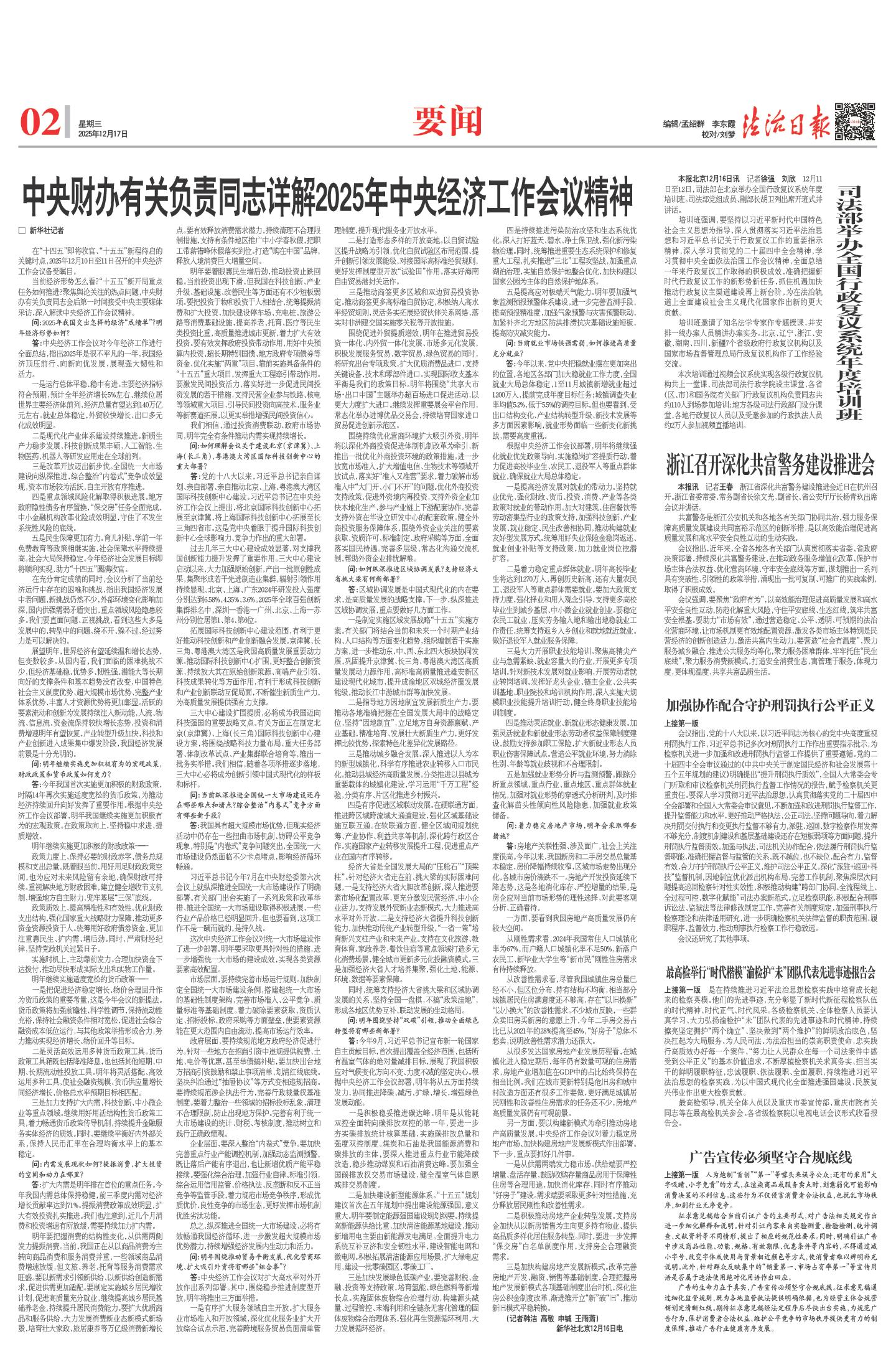 中央财办有关负责同志详解2025年中央经济工作会议精神