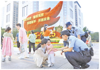 图为在服务保障纪念中国人民抗日战争暨世界反法西斯战争胜利80周年大会期间,首都公安民警以严谨细致的工作确保首都安全有序、平安和谐。