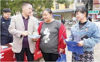 除了“摆摊”普法,穿梭在集市中的“流动普法员”同样忙碌。只见法院和检察院的干警手持宣传资料,走到蔬果摊、杂货铺前,对农户重点讲解盗采稀土的生态危害与法律责任,提醒商户防范“借卡洗钱”陷阱,把法律知识送到群众身边。