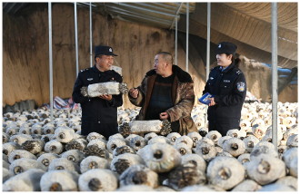 12月11日,甘肃省兰州市公安局七里河分局西果园派出所民辅警在食用菌种植大棚开展走访工作。 本报通讯员 张军扬 摄
