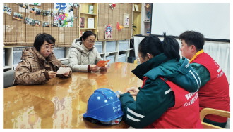 近日,国网奎屯市供电公司共产党员服务队走进社区和企业,开展保护电力设施宣传活动。图为服务队队员向社区工作人员发放宣传手册,讲解电力设施保护知识。 王婷 摄