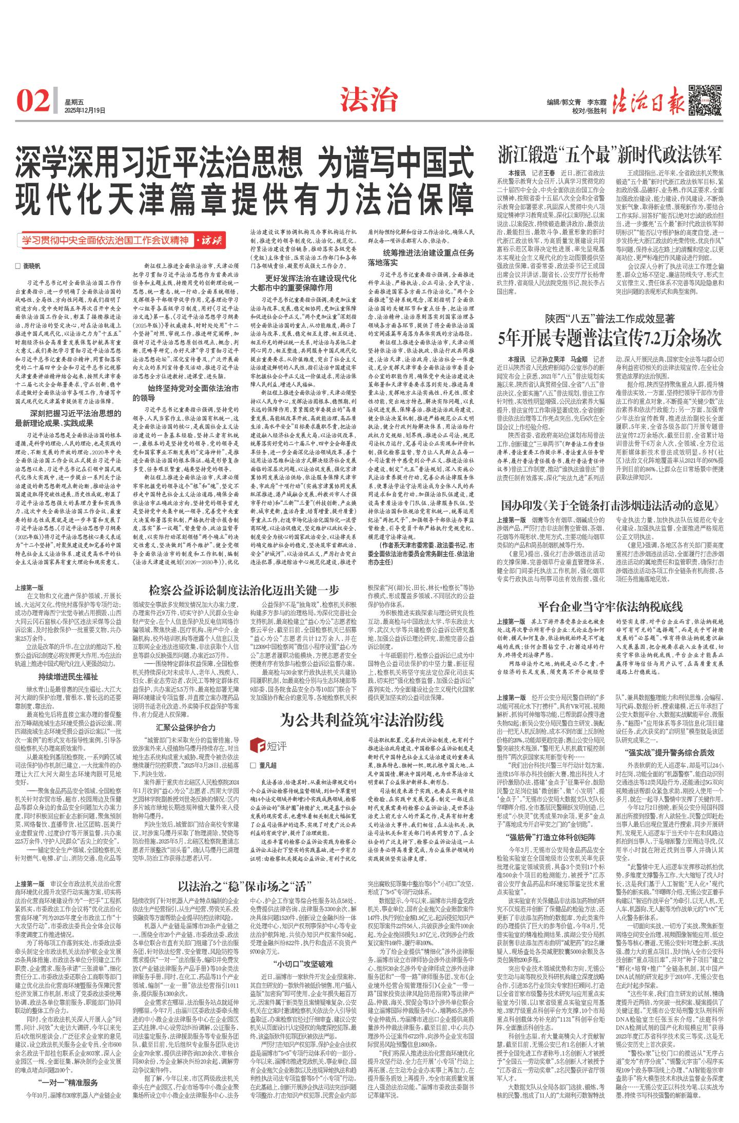 深学深用习近平法治思想 为谱写中国式 现代化天津篇章提供有力法治保障 (2025年12月19日) |