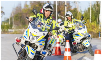 近日,上海市公安局崇明分局交管支队组织开展“铁骑”冬季大练兵活动。图为“铁骑”队员开展障碍绕行科目训练。 本报通讯员 沈群 摄
