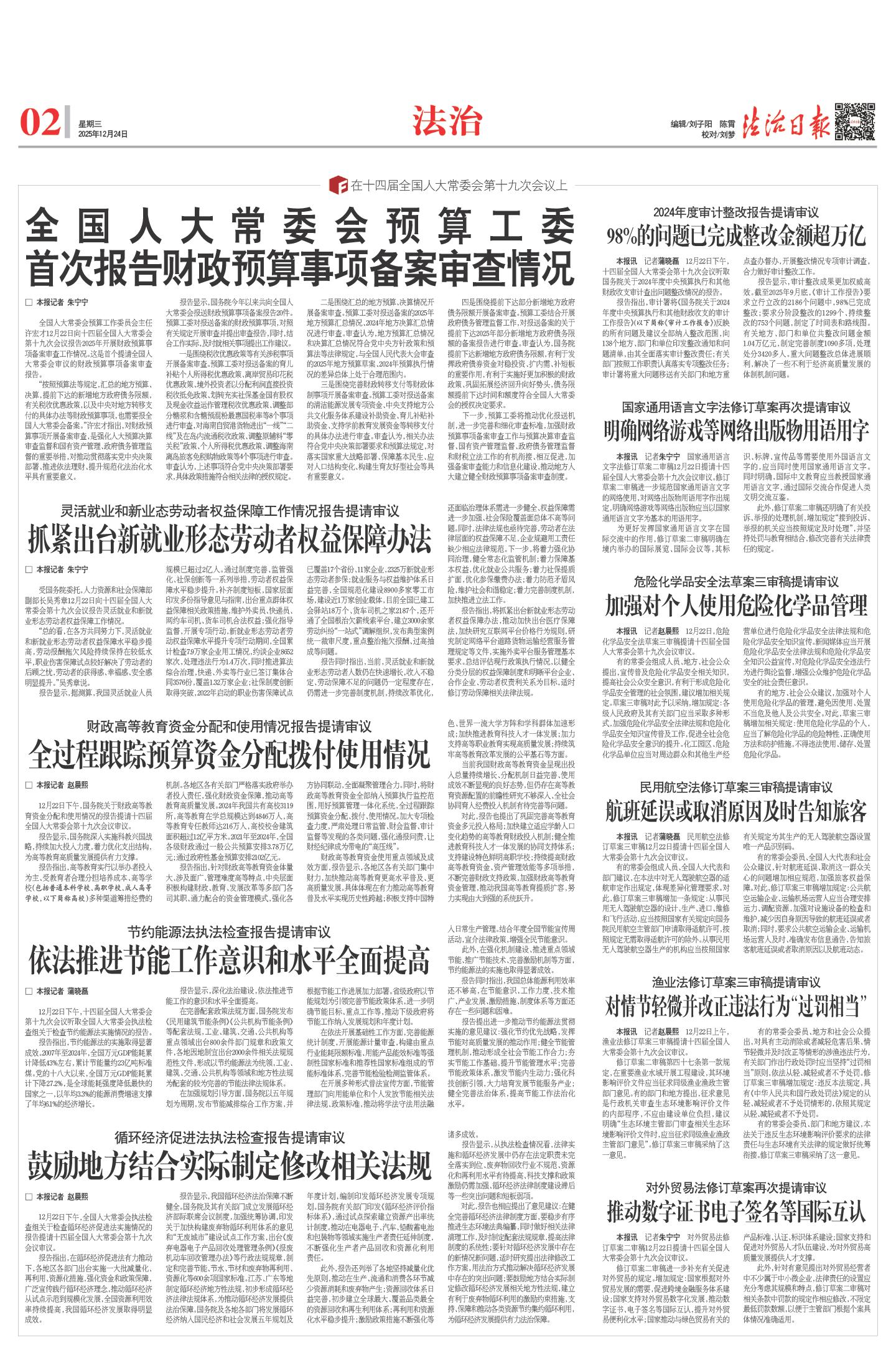 全国人大常委会预算工委 首次报告财政预算事项备案审查情况 (2025年12月24日) |