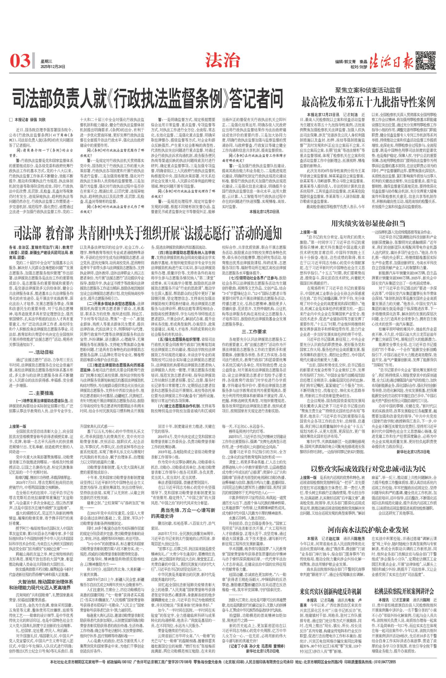 司法部负责人就《行政执法监督条例》答记者问 (2025年12月24日) |