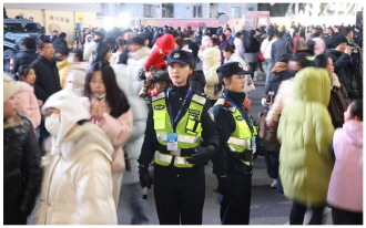元旦假期,安徽省广德市公安局持续强化巡逻防控、安全检查、客流疏导和秩序维护等措施,全力守护群众假期平安。图为1月3日,民警身着荧光绿反光背心在游人如织的绥安路巡逻执勤。 本报通讯员 陈洁 摄