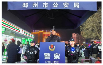 1月3日,江苏省邳州市公安局民辅警在人流密集区域的固定执勤点执勤。 本报通讯员 汤峰 摄