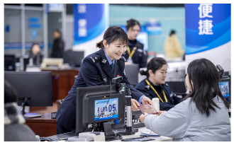 1月4日,浙江省长兴县公安局办证窗口民警午间为预约群众办理业务。 本报通讯员 方金华 摄
