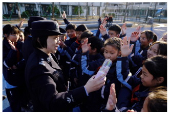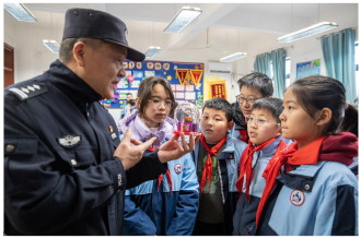 图③ 1月5日,上海铁路公安局杭州公安处海宁站派出所民警走进海宁志摩小学,为学生们送上新年第一堂安全教育课。图为民警与学生们进行安全知识问答互动。 本报通讯员 贺瑞明 马雪梅 摄