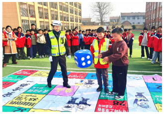 图② 近日,安徽省砀山县公安局交管大队民辅警来到砀山大德育学校,开展“交通安全进校园”普法宣传。图为民警通过游戏方式让学生们了解交通安全知识。 本报通讯员 张广星 摄