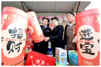 近日,安徽省淮北市市场监管部门部署开展元旦、春节期间重要民生商品服务稳价保质工作。执法人员以生产销售企业集聚区、批发市场等为重点,严厉打击假冒伪劣、掺杂掺假、虚假宣传等违法行为。图为近日,淮北市相山区东山市场监管所执法人员在辖区市场检查。 本报通讯员 李鑫 刘咏梅 摄