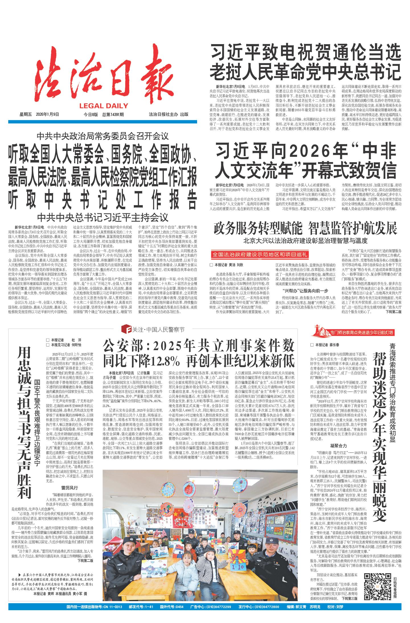 公安部:2025年共立刑事案件数 同比下降12.8% 再创本世纪以来新低 (2026年01月09日) |