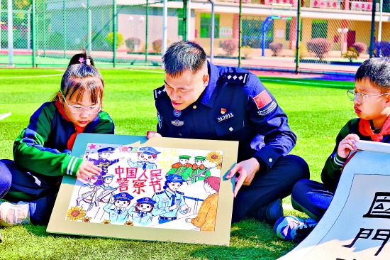 图② 1月9日,广东省开平市梁金山小学学生来到珠海边检总站开平边检站,将精心创作的绘画和书法作品赠送给民警,用童真笔触表达对移民管理警察的敬意与节日祝福。