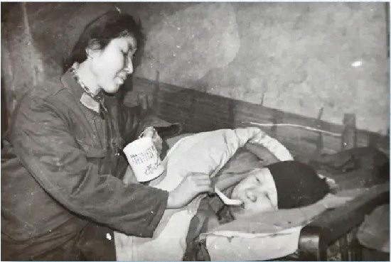 1934年7月出生,退休前任重庆市渝中区公安分局大阳沟派出所教导员。在工作条件有限的年代,做户籍民警没有其他绝招,就是靠“脑勤、口勤、手勤、脚勤”。她每天背5户居民资料,半年时间就将管辖片区内7000人的情况全部烂熟于胸。在七星岗公读院和风雷街(老街名)片区当民警时,她常常组织片区居民学习政策,为群众办实事、办好事。1980年,谢德蓉被授予“全国公安系统一级英雄模范”。图为谢德蓉照顾辖区生病老人。
