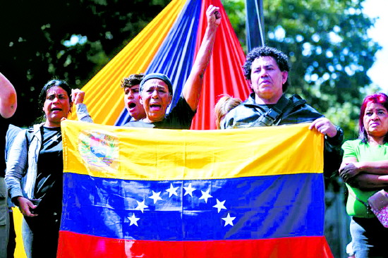 | 1月3日,在委内瑞拉首都加拉加斯,民众在米拉弗洛雷斯宫附近集会。 新华社发