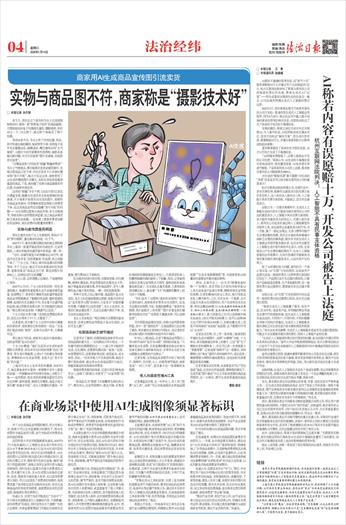 □ 本报记者 孙天骄 前不久,居住在辽宁某市的韦女士在浏览购物网站时,看到一款“软萌兔子挂件”的商品链接,主图里棕色的兔子玩偶绒毛蓬松、圆眼透亮,标价40元一个、70元两个。她当即下单购买了两个玩偶。 等待20多天后,韦女士终于收到包裹。然而,拆开快递包装的瞬间,她却哭笑不得:实物兔子挂件毛发粗糙杂乱,眼睛歪斜,嘴巴缝线如同“生气皱眉”,与图片中的可爱模样判若两物。她联系客服反映问题,对方仅回复称“图片有滤镜,自制款存在误差”。 “这哪是误差?分明是用‘照骗’欺骗消费者!”韦女士气愤地说。事后她再次登录店铺页面时,发现这款商品已经下架,评论区里有不少买家吐槽实物“货不对板”。她这才反应过来,商家使用了AI生成的精致图片当噱头,实际发货的却是粗制滥造的商品。于是,她拍摄了实物与商品链接的对比图,向商家申请退货。 这样的“照骗”并非个例。《法治日报》记者近日调查发现,随着AI生成技术在电商领域的快速渗透,不少商家开始使用AI生成的图片、视频作为商品宣传素材,凭借精美视觉效果吸引消费者下单。但这类商品宣传往往隐藏“货不对板”的问题——AI生成图过度美化商品外观、夸大功能细节,导致实物与宣传图差异显著。加之商品详情页缺乏真实信息披露,一定程度上损害消费者知情权和选择权,相关消费纠纷数量持续攀升。 实物与宣传图差异明显 居住在重庆市的于女士未曾想到,等待4个月的“梦中情偶”,最后换来的却是一肚子气。 2025年7月,喜欢收集玩偶挂饰的她在某购物平台上看到一款暹罗猫造型的毛绒挂件,在宣传图里,小家伙和她养的暹罗猫外形简直一模一样。 “当时,店铺页面显示的销量高达3.9万件,商品评论区里多是‘还原度超高’的返图,我立刻就下单了。”于女士说。下单后,面对的是漫长的预售等待。半个月过去,她忍不住向客服询问发货进度,客服回复说“商品正在打样,要还原图片的85%以上,还得经过四五轮调整”。 于女士心想,正所谓慢工出细活,于是继续耐心等待。 2025年11月5日,于女士的手机收到一则发货通知提示,她满怀欣喜地再次点开店铺详情页查看,但却愣住了:原来那只精致灵动的暹罗猫造型商品宣传图被换成了粗糙的样品图,塑料质感的眼睛,起球的毛发且颜色不均,完全看不出暹罗猫的品相。她立即联系客服交涉,对方轻描淡写地回复:“现在展示的是实物,不满意可以退货。” 于女士对此非常不满:“退货的运费要由我承担,而且白白等待了4个月,太憋屈了。” 记者看到,因为像于女士这样对实物不满意的买家较多,商家曾经在粉丝群统一回应:“这是我们能改到的‘极限’,实物不比照片差,不满意可退。” 更让她生气的是,商家承认起初令她倍感心动的宣传图“是AI生成的”。 于女士吐槽道:“他们先是用AI生成的宣传图吸引消费者,然后采用长时间的预售‘拴住’消费者,等发货时再换图,让我4个月的漫长等待落空。再精致的AI生成宣传图,也抵不过‘货不对板’的失望。” 上海市民龙女士也有类似的遭遇。2025年4月,她在某电商平台看到一家销售中老年人服饰的店铺,一件销量300多件的绣花短袖上衣吸引了她——宣传图里,银发老奶奶穿着浅蓝印花衣衫站在河畔,面料清透、刺绣花朵精致,商品介绍文案写着“亲戚夸年轻”。龙女士想着给外婆添一件夏装,便花费329元下单购买。 但当她收到货时却发现:衣服版型皱,印花模糊,刺绣针脚歪斜,和宣传图里的衣服完全不符。她仔细查看该店铺发现,所有商品图中,老年人模特均是分毫不差的笑脸、一模一样的拍照姿势。 种种不自然之处让她怀疑,商品图片是AI生成的。龙女士向店铺客服提出质疑,客服并没有回应“是否使用AI图”的询问,只是表示“衣服质量有保障,不满意可以退货退款”。龙女士退货后,发现自己被店铺拉黑了,无法在店铺内再次下单,也无法给出商品评价。 龙女士无奈地说:“现在网购不仅需要防备实物色差,还得先辨别宣传图是不是AI生成的,这坑可怎么避!” 在架商品缺乏细节描述 记者采访了解到,玩偶领域是商家采用AI生成商品图的重灾区。一名玩偶设计师介绍说,一个有趣可爱的玩偶需要经过一二十道工序才能制作完成。在此期间,还需要玩偶试版—复版—定版,如果需要印花,还要重新再试版,流程复杂、成本高昂。因此,一些没有能力开发原创玩偶、独自开模打版的商家,就会用AI生成商品图片引流后,将粗制滥造的实物卖给消费者。 根据消费者提供的线索,记者分别在3家电商平台上选购了3款被认为使用了“AI宣传图”的玩偶。 一款商品名为“敦煌飞天猫飘带毛绒玩具公仔”,售价35元。在宣传视频中,憨态可掬、灰黑条纹相间的玩偶猫垂挂在背包上,几缕胡须和身上的飘带随着玩偶的旋转上下轻颤。然而,记者拿到实物后发现与宣传图并不相符:猫咪的脸和身体像是被压扁了,毛发凌乱且毫无质感,几根线似的胡须横在脸上;象征着“飞天”的翅膀和飘带上的花纹十分粗糙。 “你们是用了AI图吗?真的有实物吗?”面对记者的询问,商家称没有使用AI生成图片,但也无法提供实物图。对此,客服的解释是:“库房有实物图,我们客服手上没有图”“图片好看是我们摄影师拍照技术好”“如果您不满意实物,可以选择退货”。 另外两款商品情况类似,实物与宣传图差距明显。其中一款“荔枝挂件