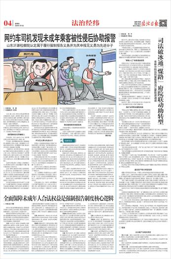 □ 本报记者 李 娜 □ 本报通讯员 刘玉刚 女孩小殷上车后,网约车司机苗师傅发现其情绪异常。沟通中,苗师傅了解到小殷在约见网友后被性侵。随即,苗师傅将小殷护送回家,告知其父母相关情况并协助其父母报警。随后,苗师傅积极配合公安机关调查取证,协助侦破一起重大刑事案件。 经山东省淄博市沂源县人民检察院申报,沂源县见义勇为评审委员会评审,2025年12月30日,苗师傅被评为“沂源县见义勇为先进分子”,并获颁证书和3000元奖励。 助民警锁定犯罪嫌疑人 时间回到一年前。2025年1月4日,苗师傅在营运过程中接到未成年人乘客小殷。 行车途中,苗师傅敏锐地发现小殷情绪低落、神情慌张。经耐心沟通,小殷透露自己从外地赴沂源县见网友,其间遭遇对方暴力胁迫并多次性侵,还被威胁不得报警。 了解情况后,苗师傅当即安抚小殷的情绪,明确告知其依法维权的重要性。在小殷担心家人安全、不愿告知父母的情况下,苗师傅果断决定将小殷护送回家,向其父母说明情况。随即,苗师傅与小殷父亲一同报警,并向公安机关提供证言,协助民警迅速锁定犯罪嫌疑人。 在案件办理过程中,沂源县人民检察院认为,苗师傅主动报告、协助报警的行为属于履行强制报告义务的行为。 记者了解到,强制报告制度,是指国家机关、居民委员会、密切接触未成年人的单位及其工作人员,在工作中发现未成年人遭受或疑似遭受不法侵害以及面临其他危险的,应当立即向公安、民政、教育等有关部门报告的制度。 检察官为何认为苗师傅的行为是履行强制报告义务的行为? 承办案件的检察官张田田说明了认定理由:“认定履行强制报告义务的核心法律因素有主体适格、情形触发、程序合规等。苗师傅作为网约车司机是密切接触未成年人的交通运输行业从业人员,符合法律规定的义务主体范畴。苗师傅在沟通中发现小殷疑似被性侵的情形,符合情形触发因素。发现后,他马上行动不拖延,主动报告不隐瞒,与小殷父亲一同报警,方式和程序合规。因此,我们认定该行为符合最高人民检察院、国家监察委员会、教育部、公安部、民政部、司法部、国家卫生健康委员会、中国共产主义青年团中央委员会、中华全国妇女联合会联合印发《关于建立侵害未成年人案件强制报告制度的意见(试行)》规定的报告情形。” 张田田还告诉记者,强制报告制度中的“强制”是指法定必为违则追责(即履行报告义务是法律强制要求的必须行为,若无正当理由违反规定,将依法承担相应责任),符合触发情形时必须报告,无正当理由隐瞒、拖延不报或虚假报告,就要承担行政、民事甚至刑事责任。 评为见义勇为先进分子 沂源县人民检察院还积极向主管部门申报苗师傅见义勇为事迹。“苗师傅送乘客到达目的地后报警,已经履行了基本的报告义务,他又主动安抚乘客异常情绪、护送到家、向其父母说明情况,还协助公安机关侦破刑事案件,体现了高度的责任感和勇气,弘扬了社会主义核心价值观。”张田田说。 沂源县委政法委分管日常工作的副书记、沂源县见义勇为评审委员会主任王富国告诉记者:“我们认定其在履行强制报告义务行为之外,还有积极救助、协助破案的行为,属于见义勇为行为。” 2025年12月30日,沂源县见义勇为表扬大会召开,苗师傅获颁“沂源县见义勇为先进分子”荣誉证书。 “这一正面激励,有效激发社会公众履行强制报告义务的积极性。报告是责任,更是守护。每一个公民,尤其是负有特殊职责的单位和个人,都是保护未成年人的‘吹哨人’。”张田田说。 记者注意到,在这一案件中,苗师傅既被认定为履行强制报告义务,又被认定为见义勇为。那么,履行强制报告义务与见义勇为能否同步认定?记者就这一问题采访了山东财经大学法学院副教授赵建良。 “同步认定履行强制报告义务与见义勇为并不冲突。同步认定的关键是先履行强制报告义务,完成法定底线动作后有超义务的积极行为,比如临时安置、主动协助取证和协助破案等,符合当地见义勇为评定规则。本案中,苗师傅完成了报警这一法定底线动作后,还有积极救助、协助破案行为,符合同步认定条件。”赵建良说。 推动强制报告制度落地 本案是沂源县人民检察院落实强制报告制度的生动实践。 办案中,检察官坚持“正面激励+反面追责”双驱动模式。一方面,对履行报告义务的个人和单位给予充分肯定,并营造见义勇为的良好社会氛围。另一方面,对办案中发现的相关宾馆工作人员未履行强制报告义务的情况,依法移送线索,监督主管部门予以处罚,强化制度刚性约束。 为实现“以案促改、以案促治”,2025年6月,沂源县人民检察院组织15家部门单位召开重点场所违规接纳未成年人专项整治活动部署会,制发检察建议,推动主管部门开展为期3个月的专项整治行动,专项检查住宿经营者130家次,责令限期整改5家,处罚5家(含涉案宾馆),组织从业人员培训2场次。 2025年7月,沂源县人民检察院与沂源县公安局建立了信息共享、分类处置、强制报告落实等7项机制,将个案成效转化为长效制度保障。 漫画/高岳