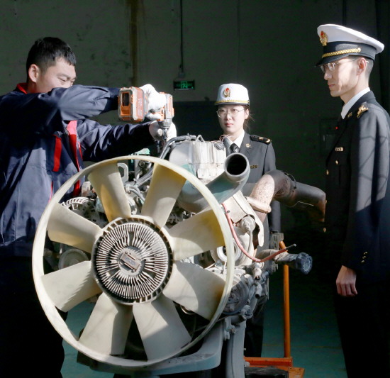 近日,在大连海关所属金普海关关员监管下,4台来自迪拜的汽车发动机顺利进入大连湾里综合保税区,随后将开展检测维修工作。这标志着东北地区首单保税维修业务在大连湾里综保区落地。图为近日金普海关关员对大连湾里综保区首票汽车发动机保税维修业务进行监管。