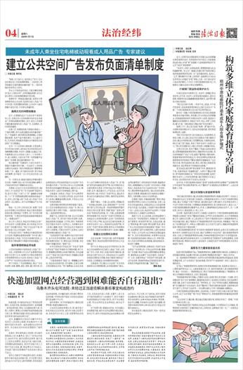 □ 本报记者 韩丹东 “妈妈,这个是什么,是玩具么?”近日,在北京市某住宅小区的电梯轿厢里,一名6岁的小男孩指着正在循环播放的避孕套广告,一脸好奇地向母亲李女士发问。 李女士不知该如何回应,只能含糊其辞地说“是大人用的东西”。这样的尴尬场景,如今在部分居民小区的电梯轿厢里时常出现。 电梯作为一种垂直运输设备,是居民日常高频使用的公共空间,但却因为成人用品广告不分时段、无差别播放或张贴,让未成年人被动接触不适宜内容,引发家长普遍担忧。 高频次无时间限制播放 近日,记者随机走访了北京市多个高层住宅小区,发现这些小区的电梯内均存在各类商业广告张贴或播放的情况,其中,部分小区电梯内播放避孕套相关成人用品广告,且高频次、无时间限制播放。 在某小区,电梯里的电子屏每3分钟进入一个循环周期,其中会滚动播放15秒的避孕套广告。广告画面中,既有情侣近距离拥抱、互相依偎的场景,也有产品外观的展示,与儿童学习机、艺术培训、家政服务等面向全年龄段受众投放的广告交替播出。 在另一个小区的单元楼电梯,记者选择工作日7时30分至8时、16时30分至17时的居民出行高峰期蹲点观察。未成年人数量占比超过三成,年龄跨度从四五岁的幼儿到十二三岁的青少年,进入电梯后,大部分孩子第一时间循着声音看向广告屏幕,看完循环播放的广告。 每当避孕套广告播放时,大部分未成年人观看时充满好奇和不解。一名送孩子上学的家长颇为无奈地说:“每天早晚接送孩子都要乘坐电梯,广告一播放,孩子就问东问西,我不知该如何解释,总不能对一名小学生讲这些成人话题吧。” 另一名家长说,她每次遇到这种情况都手足无措,不解释又担心孩子好奇乱猜测,解释又不知该如何用孩子理解的语言表达。 天津某小区业主王先生有同样的经历。他8岁的儿子已经形成“有广告才是电梯”的固有认知,前不久手绘了几张“小广告”,偷偷贴在电梯里,“小广告”的图案都是模仿电梯里的商业广告,还写上自己编入的广告语,成人用品广告夹杂其中,这让他担心,孩子过早接触会产生不良影响。 物业一名工作人员告诉记者,电梯广告多由合作传媒公司负责投放,物业主要负责提供投放位置,收取相应广告费用,对广告内容仅做简单审核,“只要没有明显低俗画面和敏感词汇,一般都会放行”。 该工作人员坦言,物业并未考虑过这类广告对未成年人的潜在影响,很少收到业主针对此类广告的集中投诉,“我们不会过多干预,毕竟这也是小区公共收益的一部分”。 有受访业主表示:“电梯是全年龄段居民的公共空间,希望物业能筛选电梯广告内容,减少甚至杜绝成人用品广告在住宅电梯内投放,让我们带孩子乘电梯时不再面对类似的尴尬。” 差异管理明确适用场景 小区住宅电梯该不该投放成人用品广告? 对此,中国传媒大学文化产业管理学院法律系主任郑宁认为,电梯作为不特定多数居民日常高频使用的公共空间,投放成人用品广告必须严守广告法和民法典的相关规定。 郑宁介绍说,广告法明确规定,禁止广告含有淫秽、色情、赌博、迷信、恐怖、暴力等内容;民法典规定的公序良俗原则是对公共空间广告内容的基本约束,广告内容必须与公共空间的属性和居民的普遍接受度相适应,避免对公众,特别是未成年人造成不良影响或心理不适。 在她看来,如果成人用品广告中出现带有性诱导的文案,不仅违背公序良俗,还会对未成年人的身心健康造成潜在危害,不符合公共空间广告的投放要求。 在陕西稼轩律师事务所律师袁振宁看来,在小区住宅电梯里投放成人用品广告,核心合规底线主要分为两个层面,一是投放内容要合规;二是投放程序要合法。 袁振宁说,在投放内容方面,在公共区域投放成人用品广告,其内容不得含有淫秽、色情、低俗或性暗示的画面、文字等。同时,考虑到居民区可能有未成年人经常出入,为保障未成年人的身心健康,投放广告时还应充分考虑对未成年人的影响,不要在未成年人经常出入的时间段高频次播放成人用品广告。 “在投放程序方面,电梯作为业主的共有部分,业主对其享有管理权。因此,在业主高频使用的电梯内投放广告,需经过业主的同意,未经同意不得擅自投放。”袁振宁说。 针对目前执法中判定此类广告是否“违背公序良俗”“低俗”标准较为主观的问题,郑宁认为,要兼顾法律刚性与实践可操作性,首先应建立对于“低俗”的分级评判体系,明确禁止性清单,让执法有章可循。 “不能简单地用‘低俗’这一模糊概念来判定,而应结合投放时段、受众群体、区域文化特点等因素综合评估。”郑宁解释道,比如在未成年人出行高峰时段投放成人用品广告,其“低俗”的判定标准就应更为严格;而不同地区的文化接受度存在差异,评判时也应充分考虑这一因素。此外,她还建议引入行业协会、社区代表组成评审小组,对争议广告进行听证,通过多方参与的方式避免执法主观性,确保判定结果的公平公正。 袁振宁建议,一方面,应从客观上明确此类广告的禁止性清单,比如,参照房地产广告中明确不得“以项目到达某一具体参照物的所需时间表示项目位置”要求,明确“低俗”“违背公序良俗”具体的判定标准;另一方面,应根据电梯使用的场景不同,对此类广告进行区别限制。比如商业办公类型的电梯内,此类广告的限制条件可