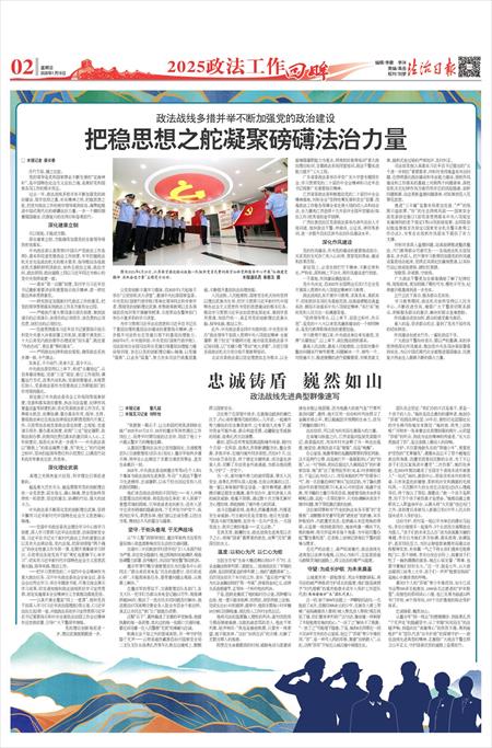 过去一年,政法战线多措并举不断加强党的政治建设,筑牢信仰之基、补足精神之钙、把稳思想之舵,把党对政法工作的绝对领导落到实处,凝聚起推进中国式现代化的磅礴法治力量,一步一个脚印朝着强国建设、民族复兴的宏伟目标奋勇前行。