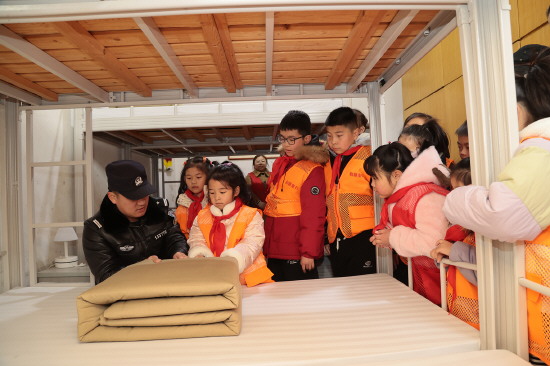 近日,江苏省沭阳县公安局联合和顺志愿者协会,组织30余名小学生开展警营公益实践活动,以沉浸式体验让学生感受警营文化。图为民警教授学生内务整理技巧。 本报记者 罗莎莎 本报通讯员 毛雯雯 陆华 摄