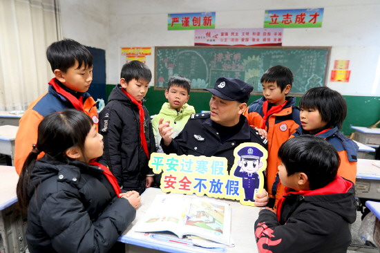 图③ 寒假将至,江西省分宜县公安局组织民警深入辖区校园,开展“平安过寒假 安全不放假”主题宣传活动。图为1月22日,民警走进杨桥镇中心学校向学生宣讲寒假安全知识。 本报记者 黄辉 本报通讯员 黄小军 摄