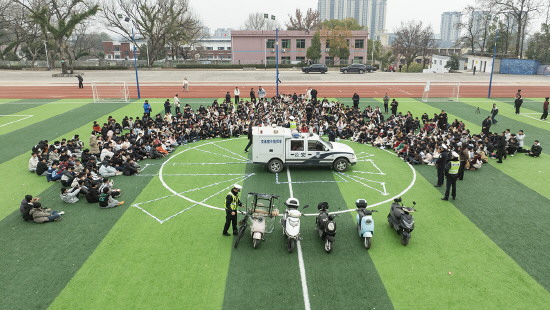 图③ 寒假将至,江西省横峰县公安局交管大队组织民辅警走进辖区校园,通过情景模拟、现场演示等方式,让交通安全知识“看得见、听得懂、能体验”。图为1月26日,民辅警来到横峰县第二中学开展交通安全宣讲活动。 本报记者 黄辉 本报通讯员 薛南 摄
