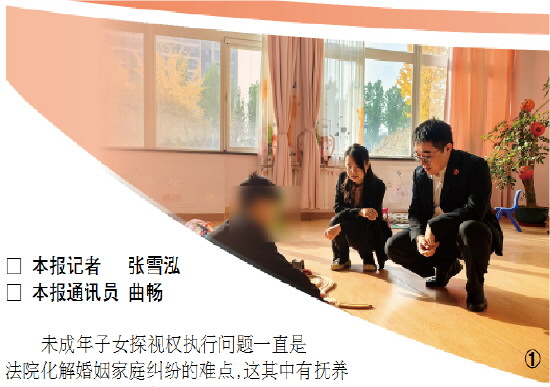 □ 本报记者 张雪泓 □ 本报通讯员 曲畅 未成年子女探视权执行问题一直是法院化解婚姻家庭纠纷的难点,这其中有抚养人阻挠、子女拒绝、亲情淡化等主观因素,也存在探视场地、伴访人员和专业力量不足等客观因素。 为了行使自己对儿子的探望权,离婚已久的魏某不得已又通过法院再次约前妻何某见面。不同的是,这次见面没有在法院,而是在区妇联的“伴视家园”会见中心。除了两名执行法官在场,接待二人的还有妇联的工作人员和心理咨询师。 至2025年年底,北京市大兴区人民法院“伴视家园”工作机制已运行3年。《法治日报》记者从该院获悉,3年以来,在大兴法院和大兴区妇联的共同努力下,“伴视家园”已促成82次探望权的执行,促进46个家庭化解矛盾,许多父母和孩子在这里得以重塑亲情。 一 去年7月,大兴法院执行局干警张世吾在单位门口接待了3位特殊的当事人:申请执行人魏某、前妻何某以及儿子小贝。魏某与何某离婚后,因矛盾较深,何某始终拒绝魏某探望小贝。无奈之下,魏某每次想看孩子时只能一次又一次到法院申请执行。从2020年离婚到现在,他已经向法院申请执行立案10次了。 “我不相信他,除非你们法官在场,不然就别想见到孩子!”面对张世吾的释法劝导,何某表现得十分抗拒,而行使探望权的魏某也陷入了尴尬。由于两人在婚姻存续期间争吵不断,离婚后魏某与孩子又很少见面,导致孩子在见到魏某时总是沉默、躲避,魏某也不知道通过何种方式来打破父子间的隔阂。 “跟班上的同学相处怎么样?”“还行……” “新年想要什么样的玩具?”“没有……” 就这样,短暂又漫长的会面在父子俩的一问一答中结束了。魏某虽见到了儿子,却又留下无尽的遗憾。 回到办公室,张世吾向团队法官王杰详述了魏某此次探望的情况。“这样探望一次,申请执行一次,治标不治本不说,还浪费司法资源。”王杰认为,不能就案办案,得想办法尽快缓解魏某与何某的紧张关系。 二 一个月后,魏某与何某在法院的组织下再次见面,这次,是在法院与妇联共同设立的“伴视家园”会见中心。针对这起案件,王杰团队本着“最有利于未成年人”的原则,制定了“1+2+X”执行方案。“1”即邀请1名心理咨询师对3人分别进行背对背谈话,通过专业心理辅导找寻问题突破口,从不同切入点化解抵触情绪,明确矛盾根源。“2”是法官与心理咨询师共同总结前述谈话中遇到的问题,从法律、亲情、心理等不同角度进行说理、引导,利用游戏互动等形式卸下各方心理防备,推动矛盾纠纷实质性化解。“X”则是指寻找可能影响案件的各方人员加入到调解进程中,将阻碍执行的消极因素转化为助力执行的积极因素。 王杰还了解到,何某不愿与魏某联系的重要原因之一是其在婚姻存续期间与魏某父母相处不和,生活琐事和矛盾的不断积累是二人最终走向离婚的导火索。于是,王杰将魏某的父母也纳入到了此次的沟通调解范围当中。 为了提高探视的质量,王杰团队将魏某与小贝安排在“伴视家园”的特定活动区域相见,这里的玩具、绘本等布置深深吸引了小贝,父子俩开始一问一答,紧张的气氛缓解了不少。心理咨询师适时引导互动,鼓励父子俩在游戏、绘画中自然交流。魏某压抑多年的父爱得以小心翼翼地释放,小贝也开始重新接纳这个既陌生又似乎有些亲切的爸爸,久违的笑容和互动在父子间重现。 经过各方共同努力,魏某与何某达成了执行和解协议,双方同意互相配合自行完成此后对小贝的探望,并承诺从孩子的利益出发相互理解,共同呵护孩子健康成长。 三 “我现在的爸爸对我很好,但我也想见以前的爸爸。”小蕊口中的两个“爸爸”,一个是与妈妈肖某共同抚养其长大的李某,另一个则是肖某的前夫,也就是小蕊的生父孙某。 多年前,肖某与孙某因感情不和离婚,女儿小蕊由肖某抚养。2025年5月,念女心切的孙某向大兴法院提出申请,要求执行探望权。孙某称,自2022年7月开始其多次联系肖某表示想要探望女儿均未得到回应,他和小蕊的爷爷奶奶都非常想念孩子。 大兴法院执行局干警杨蕾在联系孙某时,孙某难掩内心的难过:“因为隔很久才能见一面,每次见到女儿,我都觉得她变化很大,每次见面我们的话都说不够。” “在探望权执行案件中,因为子女与申请人相处机会较少,往往会对申请人抱有陌生的回避心理。但本案中,我们发现孙某能够关注女儿成长的细节,小蕊也很想见孙某。”为了找到探视难的症结所在,进一步从根源上化解孙某与肖某之间的矛盾,杨蕾决定将两人共同约见至“伴视家园”,借助专业心理疏导帮助当事人打开心结。 在“伴视家园”的谈话室里,肖某说出了自己的真实想法,“我跟小蕊已经有了新的家庭,并且生活幸福。孙某的探望对我们来说是一种打扰,孩子现在的爸爸完全可以替代孙某,给孩子更好的父爱。” “孩子对父母的双重依恋是建立安全感的基石。”心理咨询师从专业角度帮助肖某缓解焦虑与敌意,引导她将注意力放在孩子的感受上:“虽然李某待小蕊视如己出,但我们也不能因此忽略孩子的真实情感需求。从小蕊对孙某的描述来看,她还是期待着与亲生父亲见面的。” 四 这次见面中,杨蕾也从法理和情理两个层面向肖某说明孙某探望小蕊的正当性,“行使探望权是孙某作为父亲的合法权利,应当受到保护。此外,父母的情感纠纷不应以