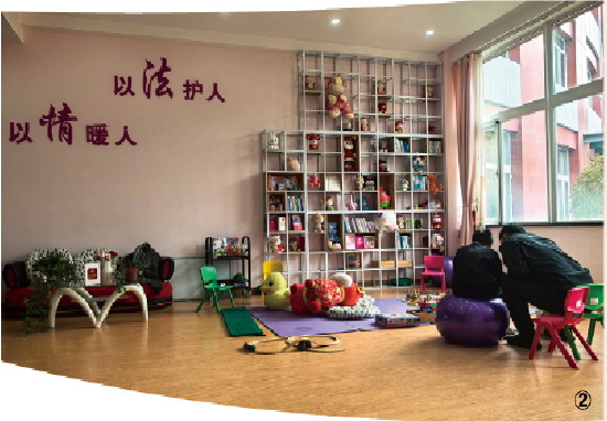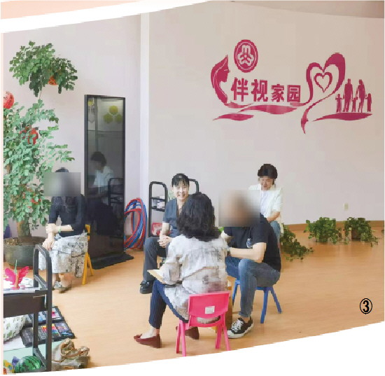 图① 法官和孩子一起做游戏谈心。 图② 法官在“伴视家园”和孩子互动。 图③ 法官与心理咨询师在“伴视家园”和家长聊天谈心。 北京市大兴区人民法院供图