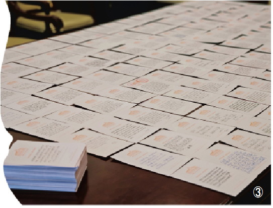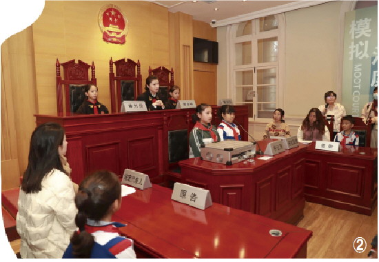 图① 中国法院博物馆公益开放十周年纪念券。 图② 中国法院博物馆模拟法庭《抽凳子游戏》情景剧现场。 图③ 中国法院博物馆公益开放十周年纪念活动中收到的部分参观者留言。 中国法院博物馆供图