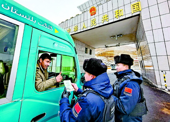 □ 本报记者 潘从武 文/图 一声鹰唳划破帕米尔高原的长空。 雪域孤岛,天际雄关,巍然矗立。 海拔5100米,零下30摄氏度,红其拉甫国门在风雪中静静挺立,往来的跨境车辆有序穿行。这座世界海拔最高的国门,不仅是中国与巴基斯坦唯一的陆路口岸,更是中巴经济走廊上最重要的支点之一。 正值隆冬,春节临近,1月21日,《法治日报》记者来到位于新疆维吾尔自治区塔什库尔干塔吉克自治县冰峰雪岭间的红其拉甫出入境边防检查站前哨班,沉浸式感受高原民警戍守国门的忠诚担当。 “不能出任何纰漏” 到达红其拉甫国门时,已是正午时分,红其拉甫边检站前哨班的民警们正迎风冒雪执行勤务。当推开车门的一刹那,刺骨寒风径直扑面而来,刚跳下车,记者有点头晕目眩,一个踉跄差点摔倒。 正在前哨班带队执勤的边检站执勤一队副队长张雷,一个箭步上前扶住了记者,叮嘱道:“这里是高海拔地区,含氧量不足平原一半,在这里走路一定要慢点儿,大声喊话都费劲得很呢!” 记者看到,执勤民警们身着厚重的防寒服,戴着棉帽和棉手套,顶着刺骨的寒风,正在按照责任分工引导车辆、检查车体、核对人员信息……认真地查验着每一辆来往车辆、每一名出入境人员。 在全天候综合检查大厅,车检组执勤民警高小原和巴合提亚尔·巴哈斯,爬上一辆出境大车、翻开货箱、钻进车底、用专用仪器检测,每一个动作都严谨细致。他们的脸颊被寒风吹得通红,双手也被冻得有些麻木,但动作依旧敏捷而准确。 “检查出入境车辆要仔细,不能出任何纰漏。”张雷用沙哑的声音不断在对讲机中提醒着。记者注意到,他的嘴唇呈现出长期高原环境下特有的黑紫色,嘴角还隐约渗着血丝。 下转第三版 上接第一版 “再辛苦也值” 执勤间隙,民警高小原告诉记者,中巴国门所在的位置,年平均气温为零下9摄氏度,水的沸点不足70摄氏度,“头痛、失眠、脱发、流鼻血,这些‘家常便饭’式的困扰,大家早已习以为常。”高小原说。 “2024年12月1日,红其拉甫口岸由季节性开放转为常年开放,这一转变意味着通关需求的大幅增加。以前季节性开放时,我们还能有相对集中的休整时间,现在常年开放后,全年无休成为常态。”张雷接过了话茬。 在执勤现场采访的记者已冻得瑟瑟发抖,拿着采访本的手指变得麻木僵硬,只好不停地跺着脚。张雷赶紧从备勤室里拿来一件厚重的大衣给记者披上:“这里风大,一分钟就能把人吹透。但你看这客车和货车一趟趟驶过,在寒冬里,中巴两国的人员和贸易往来火热,我们再辛苦也值啊。” “您好,能帮帮忙吗,我朋友头痛恶心、有点呼吸困难,好像出现高原反应了。”就在记者现场采访时,在前哨班“国门景区”打卡点,一名游客向民警们挥手求援。民警周富康快步从执勤室里拿来便携式氧气瓶递了过去,又从上衣口袋中掏出两瓶红景天口服液,帮助出现高反的游客服用。几分钟后,这名游客慢慢恢复了正常,连连道谢。 “这几年,红其拉甫国门每年吸引着全国各地众多游客前来观光打卡,出现高原反应是常事,昨天我们就为4名出现高原反应的游客提供了药品,这些都是我们随身必备的。”周富康拿出口袋中的速效救心丸、丹参滴丸和红景天口服液,介绍着它们的功效。 “中国移民警察太棒啦” 此时,一辆巴基斯坦跨境班车满载乘客准备入境。 记者登上这辆客车,从巴基斯坦乘车回国的广东籍客商林先生告诉记者:“现在共建‘一带一路’带来了无限商机,这次我出境前往巴基斯坦就是洽谈投资事宜。” “中国移民警察太棒啦!”还没等记者问话,巴基斯坦籍商人夏海提·丁就用流利的中文称赞执勤民警,并竖起大拇指。聊天中记者得知,他从郑州大学毕业后就长期往来于中巴两国之间做服装贸易。“他们(民警)就像是连接中巴友谊的纽带,为我们做生意提供了很多便利,我很喜欢中国。” 前哨班勤务中心的大屏幕上,显示着民警们努力的结果:2025年,验放出入境人员41962人次、车辆7506辆次,旅客覆盖62个国家(地区)…… “再见,我的中国兄弟,辛苦你们啦。”很快接受完各项检查后,巴基斯坦籍司机萨地克·艾力用不太流利的中文笑着向前哨班民警告别,客车缓慢起步,驶过不远处的山坳后,消失在视野里。 巍巍国门,寒风正劲。放眼望去,前哨班营区张贴的标语“生命有禁区,服务无盲区”格外醒目。 记者手记 “我们坚守‘生命禁区’,缺氧但不缺精神,无论在怎样的条件下,都要当好国门卫士!”红其拉甫边检站站长范永勇的话铿锵有力。这里,离天最近,离家最远。一代代戍边民警接续传承使命任务,勇于挑战生命和精神极限,与雪山为伍、与冰峰为伴,抗缺氧、斗严寒、耐寂寞、守国门。“宁可透支生命,绝不亏欠使命”的誓言,时时在耳边响起。